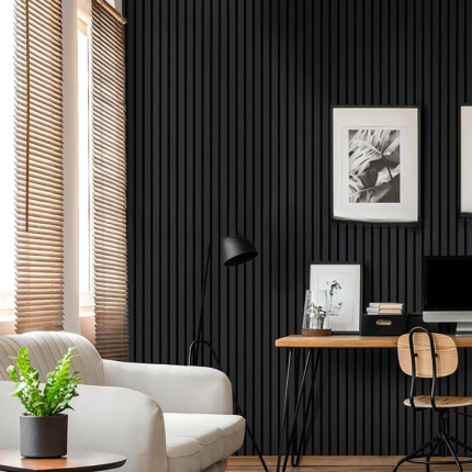 400mm x 2400mm Black Wood Slat Acoustic Panels